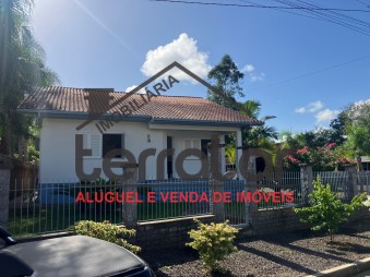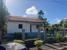 Chácara possuindo um galpão e uma casa de caseiro. Nos fundos do imóvel passa o Arroio Cadeia.