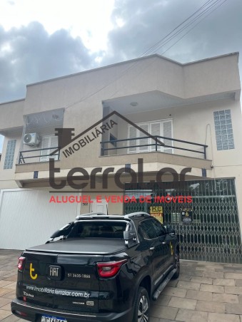 Sobrado novo com 104,35m² com 3 dormitórios, 1 banheiro, sala de estar e cozinha, área de serviço e garagem.