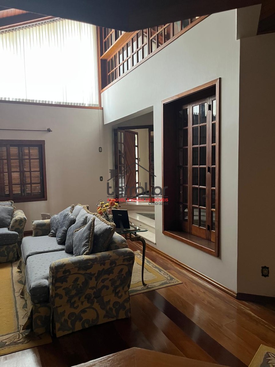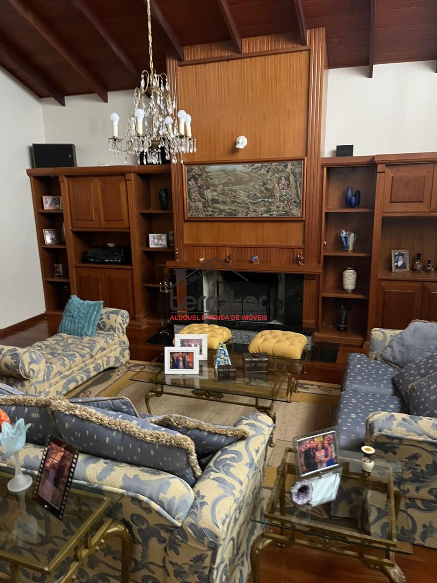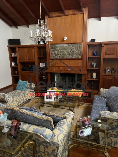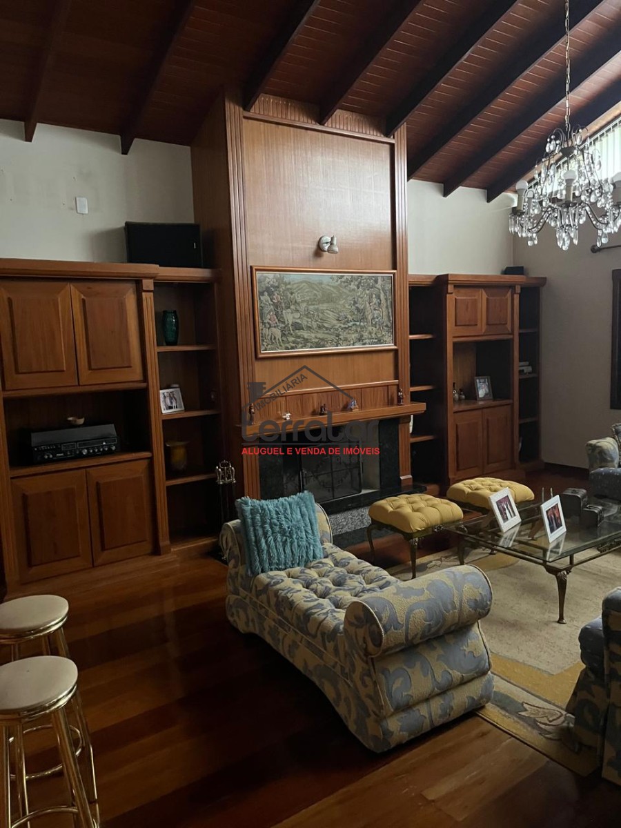 •Ampla sala de estar com lareira, biblioteca e sala de jantar