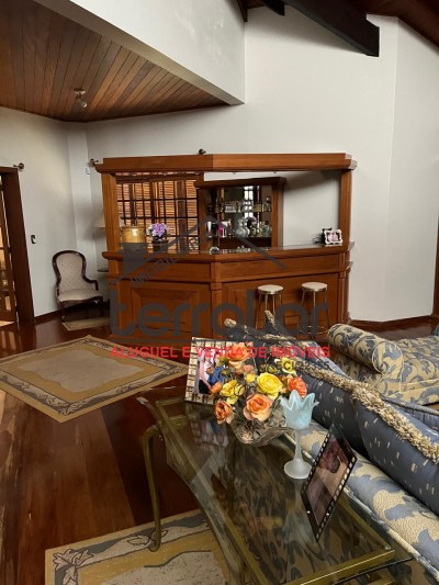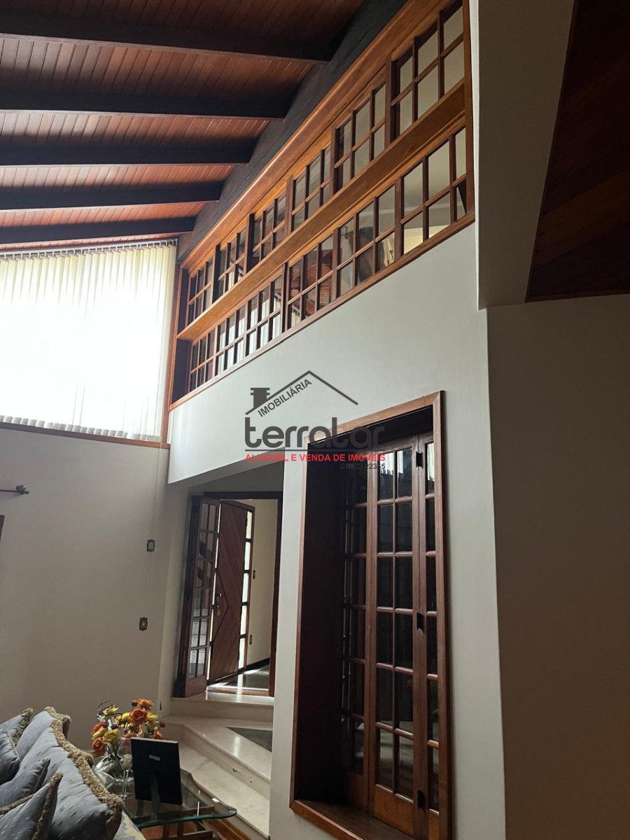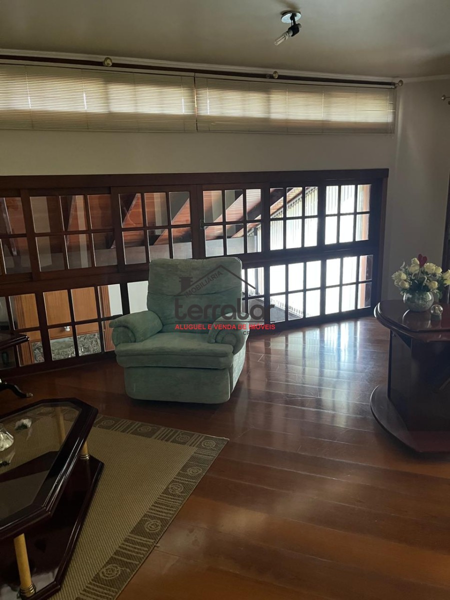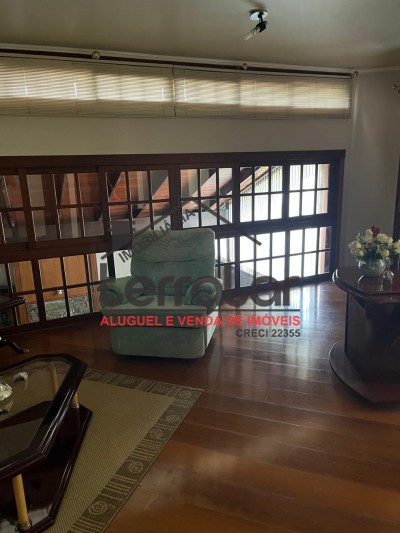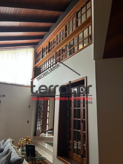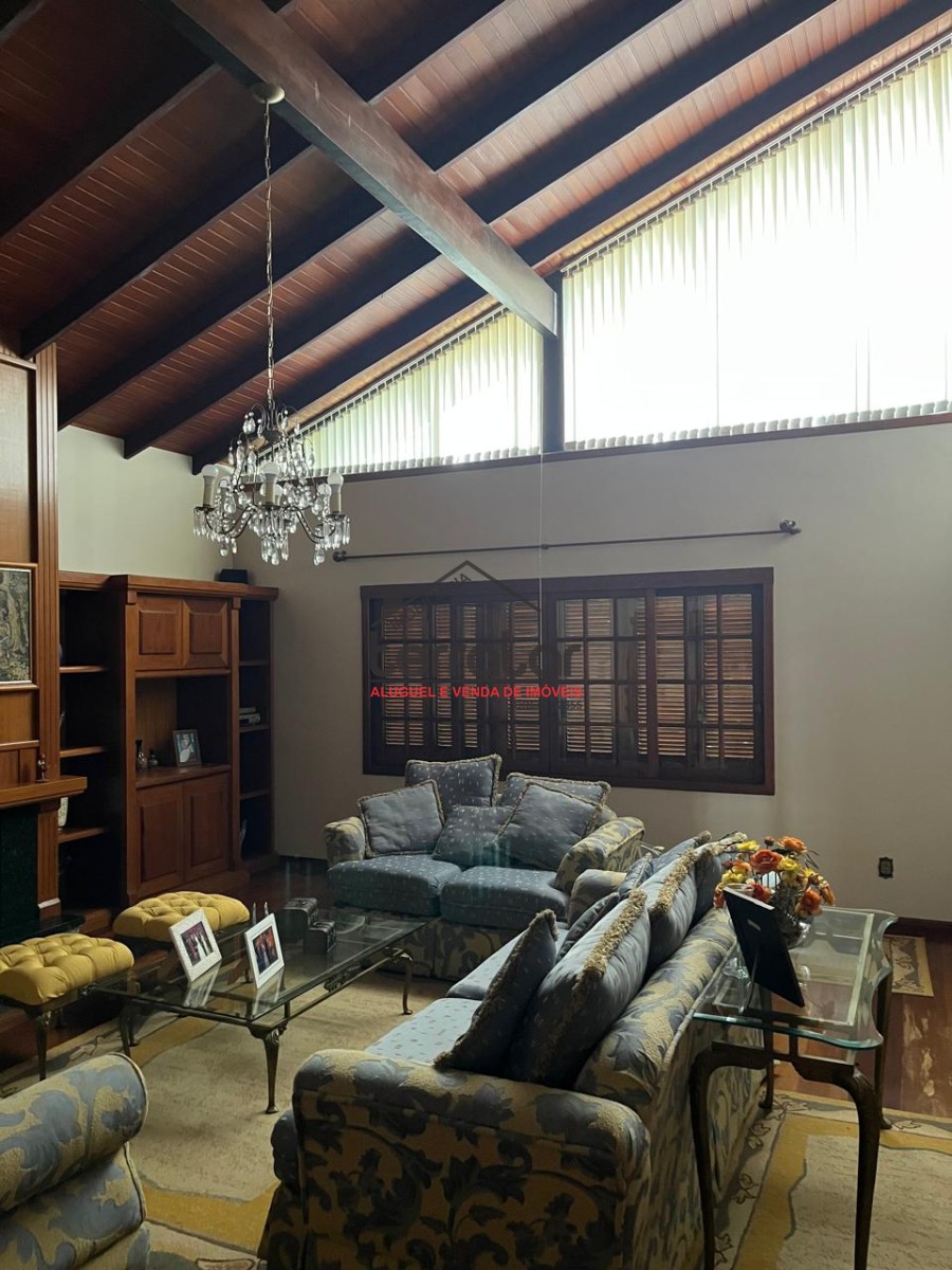 •Ampla sala de estar com lareira, biblioteca e sala de jantar